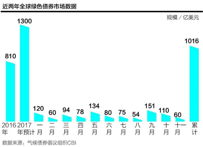 据悉,国家发改委和中国人民银行牵头制定的统一绿色债券目录明年将出台,届时被视为主要发展障碍之一的标准问题将得到解决。