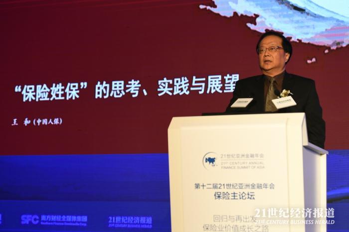 12月5日,由21世纪经济报道主办,南方财经全媒体集团指导的“第十二届亚洲金融年会”,在北京召开。在以"回归与再出发--保险业价值成长之路"为主题的保险主论坛上, 中国人民财产保险股份有限公司监事长王和发表了题为《“保险姓保”的思考、实践与展望》的主题演讲。