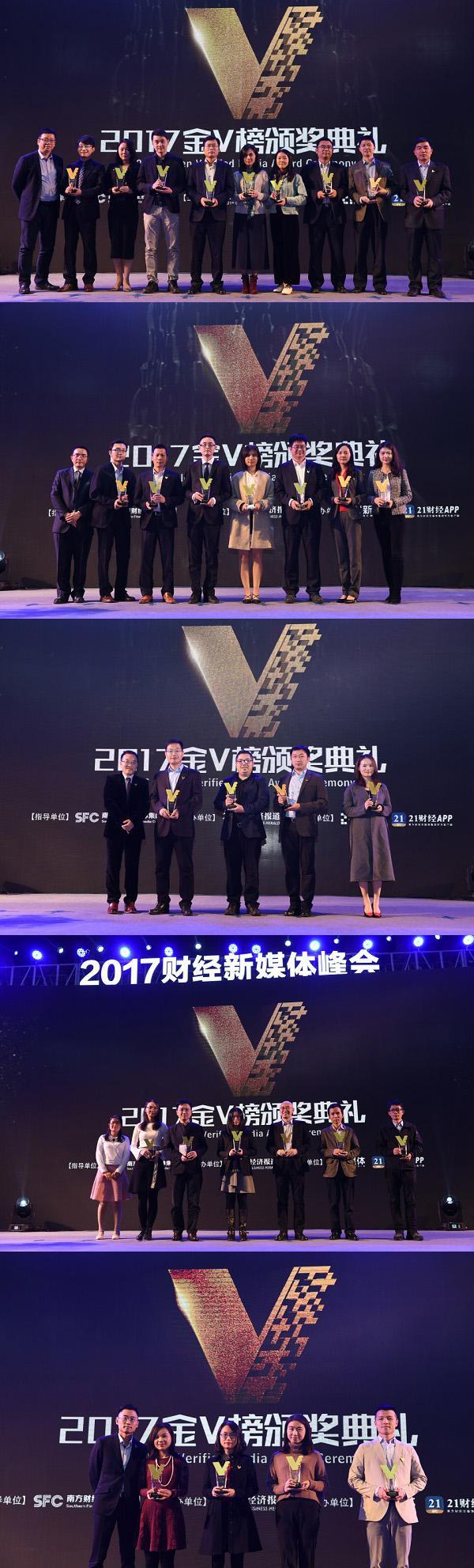 当晚,2017年度金V榜颁奖典礼隆重举行。由21世纪经济报道倾力打造的金V 榜,是国内首个聚焦财经领域新媒体、金融机构客户端和自媒体的评价榜单。