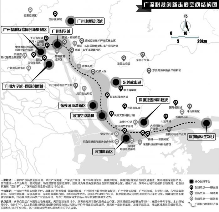 至于“十核”和首批37个“创新节点”,则由分布于三市的创新型区域或平台构成,作为推进的具体依托。这些“核”与“节点”散布在整条广深科技创新走廊上,也将三市连成带状。