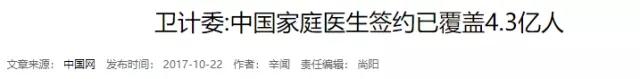 原来,有媒体报道称:“记者从17日举行的‘2017中国家庭医生论坛’了解到,截至今年11月底,全国95%以上的城市开展家庭医生签约服务工作,超过5亿人有了自己的家庭医生,人群覆盖率超过35%,重点人群覆盖率超过65%。”