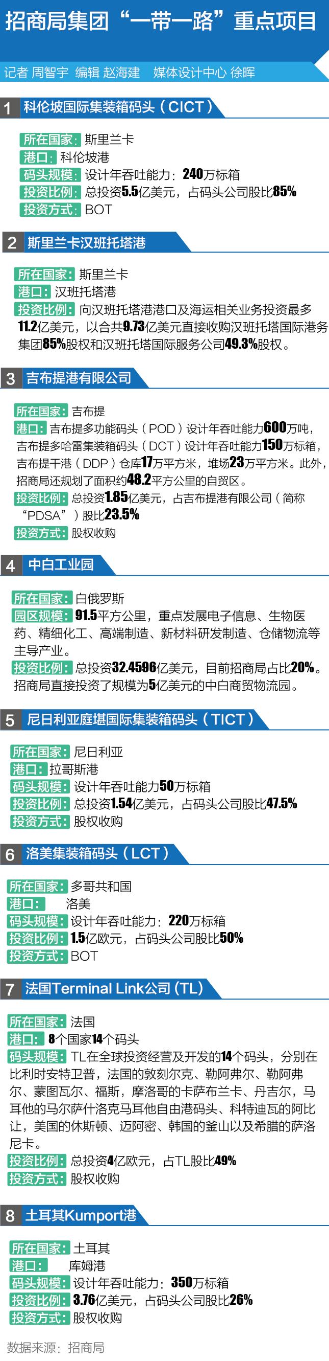 通过输出“蛇口模式”,招商局正将吉布提自贸区项目、斯里兰卡科伦坡港与汉班托塔港项目、白俄罗斯中白工业园项目、多哥项目和坦桑尼亚项目等五大项目做成标志性项目,以推动自身成为“具有全球竞争力的世界一流企业”。
