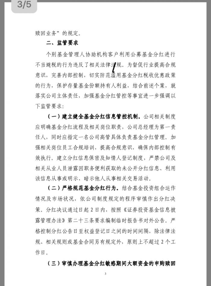 各基金管理人要深刻吸取教训,引以为戒,坚持对存量基金份额持有人利益负责,依法合规实施基金分红,切实防范滥用税收优惠政策的