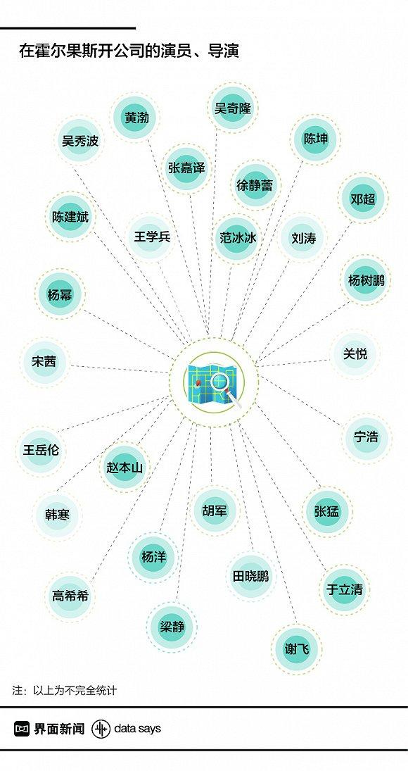 霍尔果斯橙子映像传媒是邓超的公司,霍尔果斯嘉行影视文化是杨幂的公司,霍尔果斯不二文化传媒是吴秀波的公司。电影公司扎堆霍尔果斯的背后,是众多明星老板、合伙人。