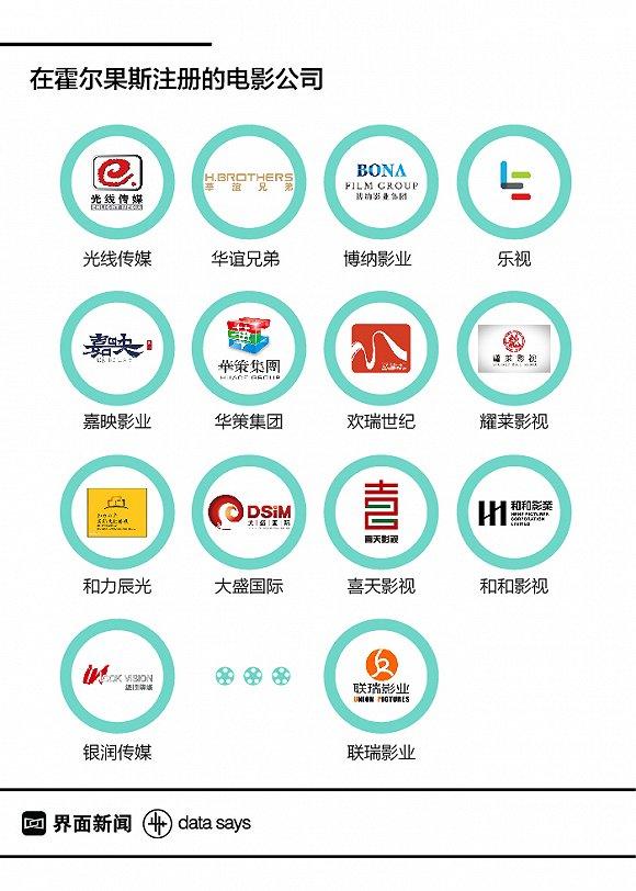 界面新闻记者查阅近年上映影片的制作、发行方,带有霍尔果斯字眼的公司名称时常出现。比如霍尔果斯青春光线影业有限公司共制作14部电影作品,其中不乏《嫌疑人X的献身》、《缝纫机乐队》等大众熟悉的影片。而中国电影票房的最大赢家《战狼2》,背后也有霍尔果斯系的身影,且霍尔果斯橙子映像传媒有限公司还制作了《复合大师》、《乘风破浪》等5部作品。