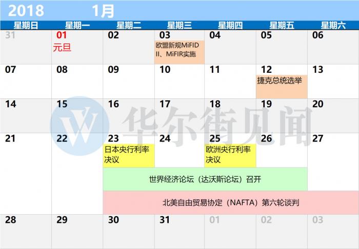 1月中国将公布2017年度经济数据,并发布中央一号文件。明年10月之前,英国退欧协议必须敲定。美国将在11月迎来事关国会政治格局的中期选举。此外,俄罗斯、意大利、墨西哥等多个国家将迎来大选。
