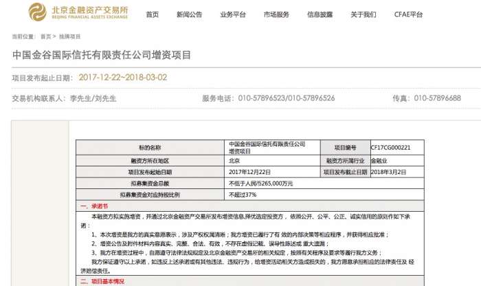 日前,金谷信托在北京金融资产交易所披露引战计划,拟募集资金26.5亿元,对应股权不超过37%。募集资金用途为补充资本金,拟新增注册资本金12.92亿元。
