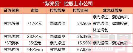 梳理公开数据可见,目前在A股市场,“紫光系”控股紫光股份、紫光国芯和*ST紫学3家上市公司,市值超过1000亿元。