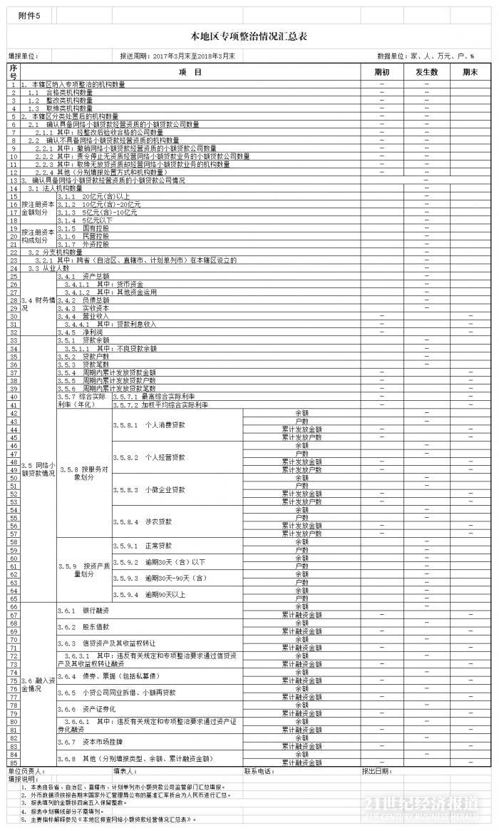 该此整治中,附件要求地方、小贷公司需要填报四张表格。