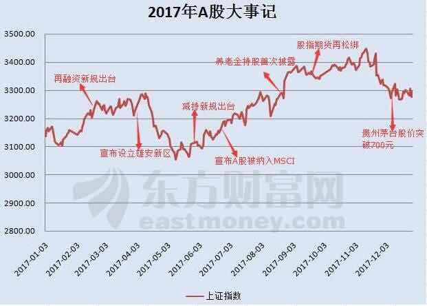 2017年的A股交易今日落下帷幕,沪指红盘收官,收盘报3307.17点,全年累计涨6.56%;受益于大蓝筹的强劲表现,上证50指数全年累计飙升25.08%;而创业板指则表现萎靡,全年累计下跌10.67%,在全球主要股指中排名倒数第一。