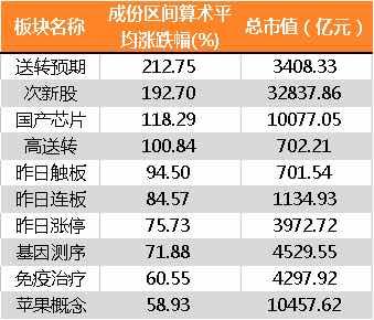 送转预期概念全年累计涨幅达212.75%,位居所有概念板块首位。