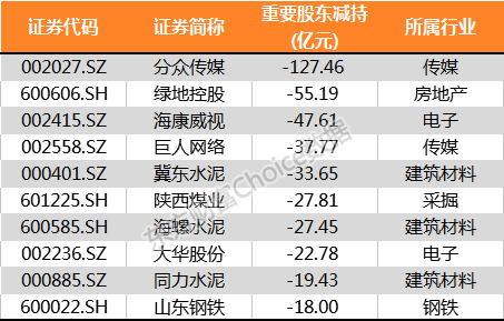 股东年内累计套现127.46亿元,分众传媒成“减持王”。