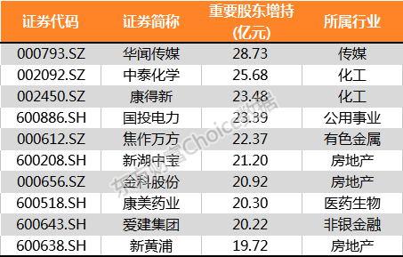 华闻传媒、中泰化学位列增持规模第一、第二。