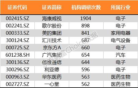 海康威视年内累计接待了1904家机构的调研,成为最受机构欢迎的个股。