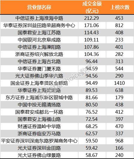 中信证券上海淮海中路年内累计成交212.29亿元,当仁不让成为2017年“实力最雄厚游资席位”。