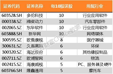 今年的高送转跟去年多家公司10送30相比有些逊色,10送10仅有4家。