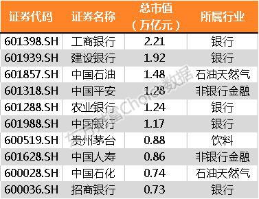 工商银行市值超过2万亿领跑,建设银行与中国石油分列二三位。