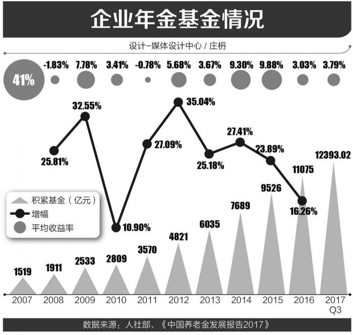 在债券市场先扬后抑和股票市场急跌慢涨的背景下,2016年企业年金基金投资的加权平均收益率创下2011年以来新低,仅为3.03%。虽然人社部数据显示,2017年前三季度平均收益率已涨至3.79%,但和2008年以来的历年平均4.46%相比,仍有一定距离。