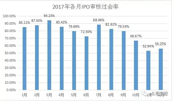 2017年,发审委共审核了481家上市公司的IPO申请,有8家暂缓表决、86家未通过审核、7家取消审核,其余380家通过审核。整体通过率79%。