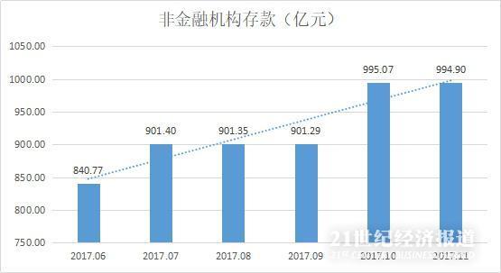 根据中国人民银行《货币当局资产负债表》,支付机构交存人民银行的客户备付金存款(计为“非金融机构存款”)从2017年6月末的840.77亿元,迅速提升至2017年11月末的994.90亿元。