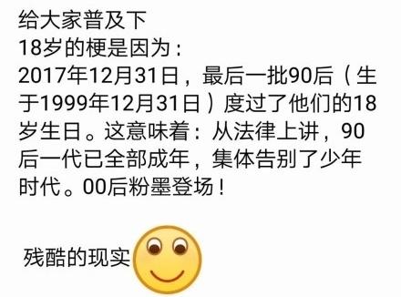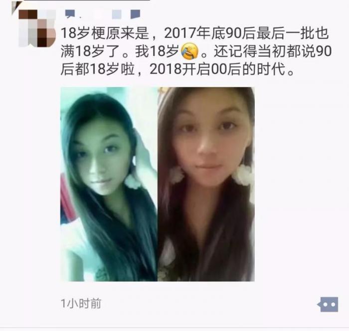 那是因为朋友圈十八岁照片的梗:最后一批90后即将全部成年。