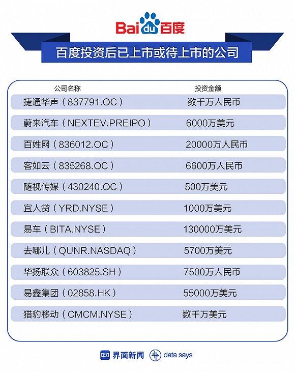百度投资最少却上市率最高