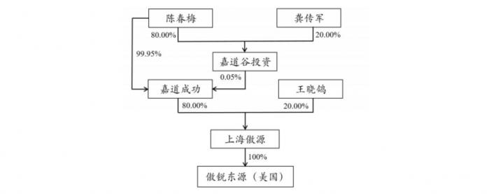 数据则显示,嘉道成功成立于2017年8月22日,注册资本20.01亿元,实际控制人为陈春梅,陈春梅与龚虹嘉则为夫妻关系。目前,嘉道成功持有上海傲源80%股权,龚虹嘉则担任上海傲源董事长职务。