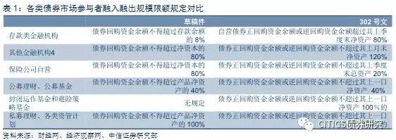 302号文根据各类债券市场参与者的特征分别确定了各自的资金融入融出规模的限额,相比3月份媒体披露的草稿件的规定,302号文关于各类债券市场参与者的资金融入融出规模的限额做出了以下修改: