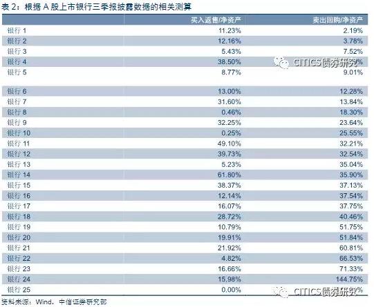 根据302号文的规定,根据A股上市银行三季报进行了相关测算,我们发现,无论是根据草稿件公布的限额规定,还是302号文的细则,部分农商行的资金融入规模都明显超标。除此之外需要说明的是,买入返售与卖出回购会计科目内不单单包括线上进行的债券正逆回购余额,在127号文发布前,商业银行也将非标资产纳入买入返售科目,因此,我们的测算将比实际值偏高。此外,三季报公布的买入返售数据尚未纳入各银行因债券代持而形成的买入返售资产,随着302号文的下发,各商业银行的买入返售/净资产一项将会呈现一定程度的上升,尤其是部分城商行相关指标也可能从达标下降为超标。