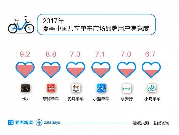 艾媒咨询数据显示,用户对小蓝单位的满意度为7.1分,在各共享单车企业中排行第四。此外,小蓝单车具有一定的知名度,排名在永安行之上。