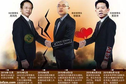 这一举动把周鸿祎气坏了,这就好比两个人谈恋爱,突然对方把第三者拉进了家门。由于乐视成了酷派的第二大股东,酷派又持有奇酷超过半数的股权,所以乐视也间接变成为了奇酷的股东。