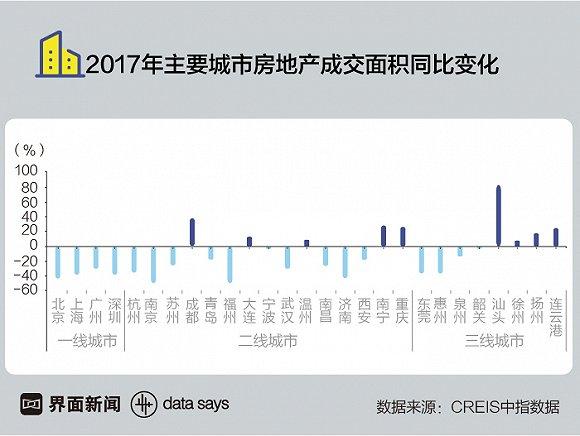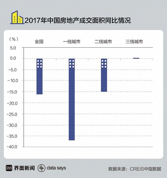 2017年中国房地产总体成交面积同比下降16.17%,其中一线城市成交面积大幅下降37%。