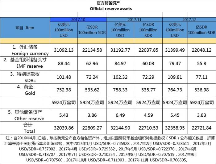 2017年12月外汇储备3.14万亿美元,连升11个月