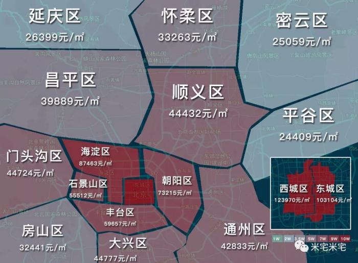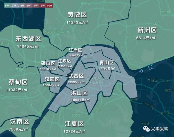 1、本文中大致颜色为界,低于10000元为浅绿色,高于20000元价格越高红色越深。