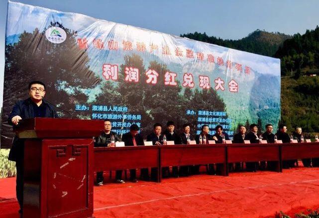 2018年元旦前,雪峰山文旅为景区乡村贫困户派发100万元扶贫项目利润分红,这是湖南首批兑现旅游产业金融精准扶贫项目利润分红。