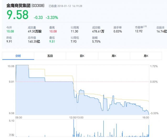 资料显示,金鹰世界隶属于金鹰商贸集团(03308.HK),1月12日下午,金鹰商贸集团股价以下跌3.33%报收9.58港元。不知道此次火灾,是否会影响金鹰商贸集团下周股价的走势。