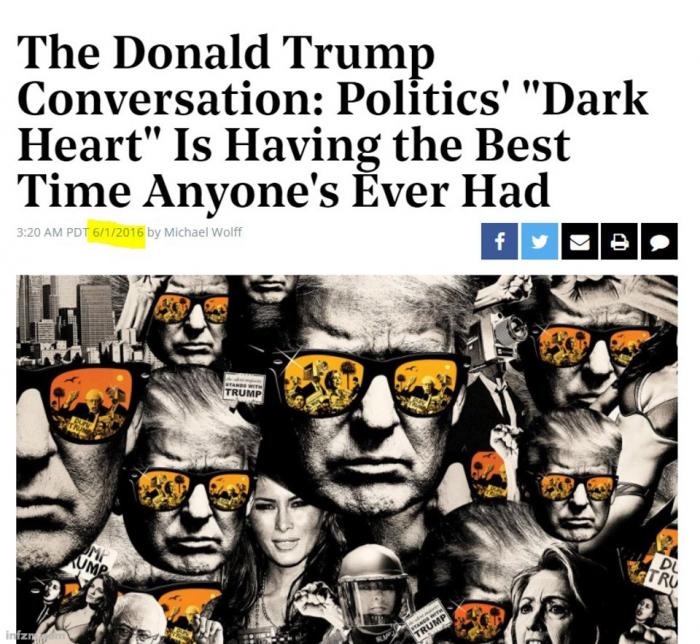 2016年6月迈克•沃尔夫为《好莱坞报告》采访了特朗普,特朗普很喜欢这篇文章和配图。(资料图/图)
