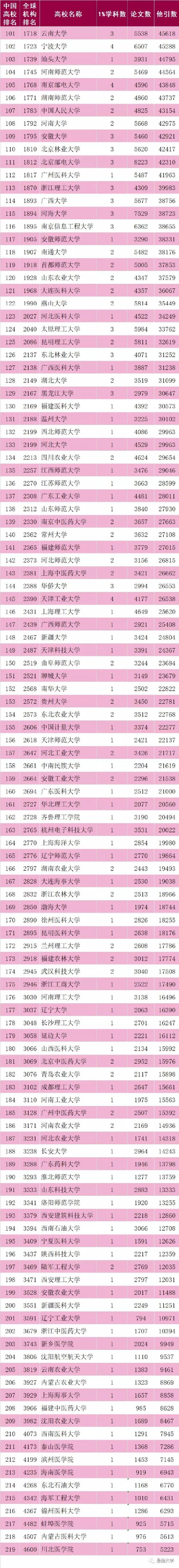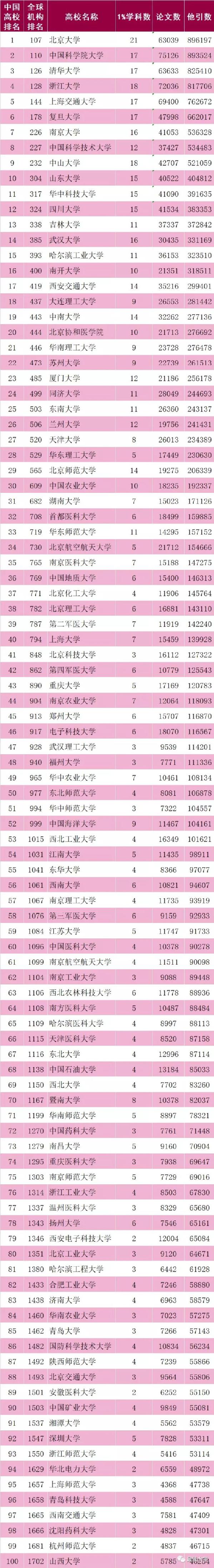其中,中山大学18个学科进入全球前1%,论文他引次数位居全球高校232位和国内高校9位;华南理工大学9个学科,位居全球高校446位和国内高校21位;暨南大学8个学科,位居全球高校第1167位和国内高校70位;南方医科大学、华南师范大学和深圳大学5个学科,分别位居全球高校1108、1199和1547位,国内高校64、71和92位;华南农业大学3个,位居全球高校1460位和国内高校84位。
