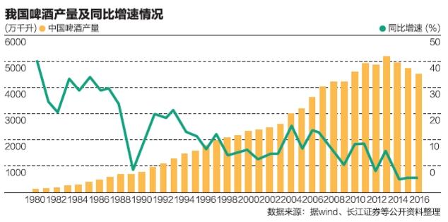 长江证券研报显示,消费升级成为行业二次发展机遇,数据显示,2011~2016年期间国内经济型产品份额下降约9.3%,而高档产品以及中档产品份额分别提升5.6%、3.7%,伴随行业消费升级,中高端产品占比将持续提升。在此基础上,啤酒消费的内在增长动能逐步切换,逐渐从后量变时代进入新质变时代,“质增”将逐步替代“量增”。