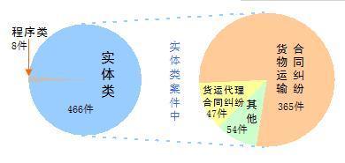 同期广州海事法院共受理涉自贸区海事海商案件474件,审结451件。其中,受理实体类案件466件,以海上、通海水域货物运输合同纠纷及海上货运代理合同纠纷为主;受理程序类案件8件,以申请扣押船舶案件为主。(自贸区海事海商案件的主要类型见图四)海事海商案件在各片区分布上,涉及深圳前海蛇口片区的案件最多,其次为广州南沙新区片区,珠海横琴新区片区的较少。