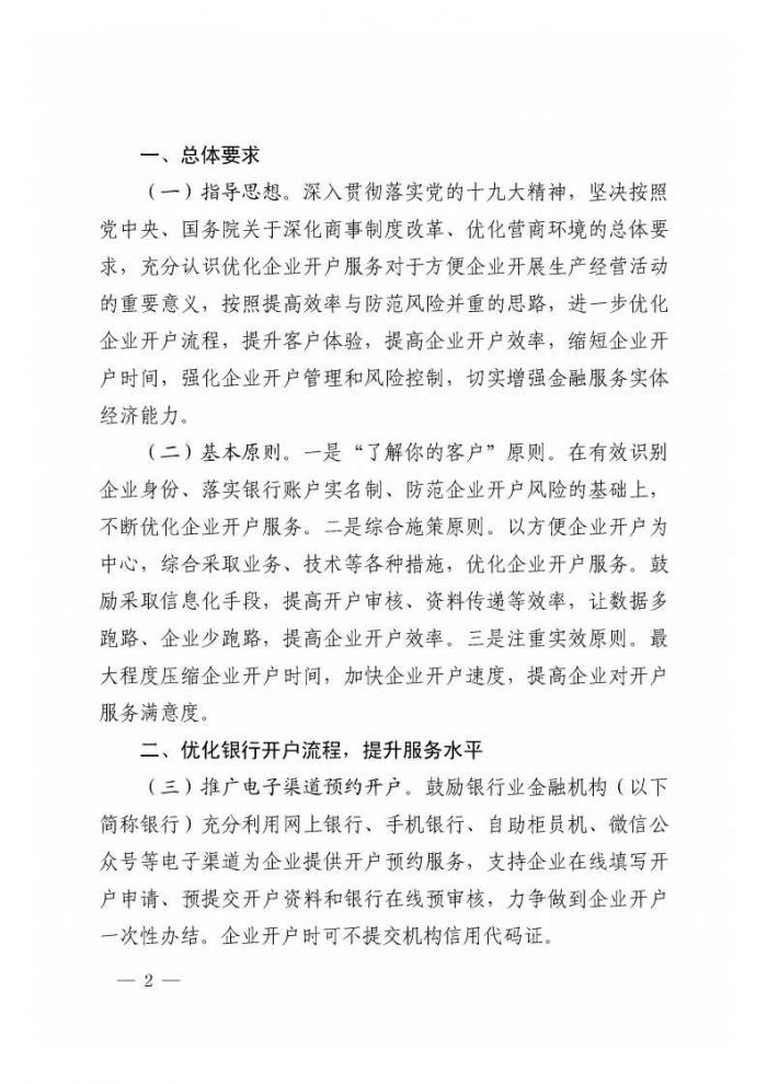 推广电子渠道预约开户。鼓励银行业金融机构充分利用网上银行、手机银行、自助柜员机、微信公众号等电子渠道为企业提供开户预约服务,支持企业在线填写开户申请、预提交开户资料和银行在线预审核,力争做到企业开户一次性办结。企业开户时可不提交机构信用代码证。