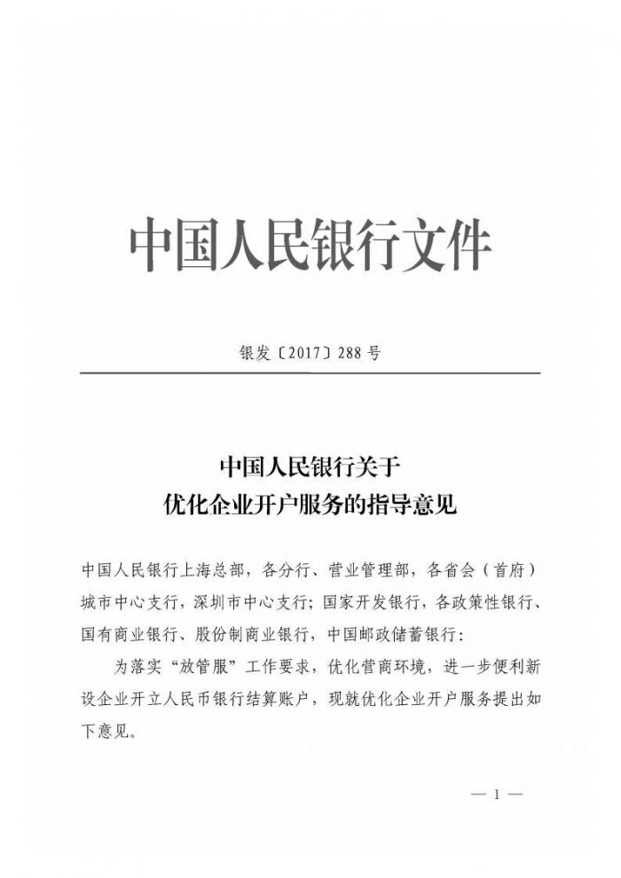 1月17日,21世纪经济报道记者获悉,中国人民银行近日下发《关于优化企业开户服务的指导意见》(银发〔2017〕288号),为落实“放管服”工作要求,优化营商环境,进一步便利新设企业开立人民币银行结算账户,就优化企业开户服务提出意见。