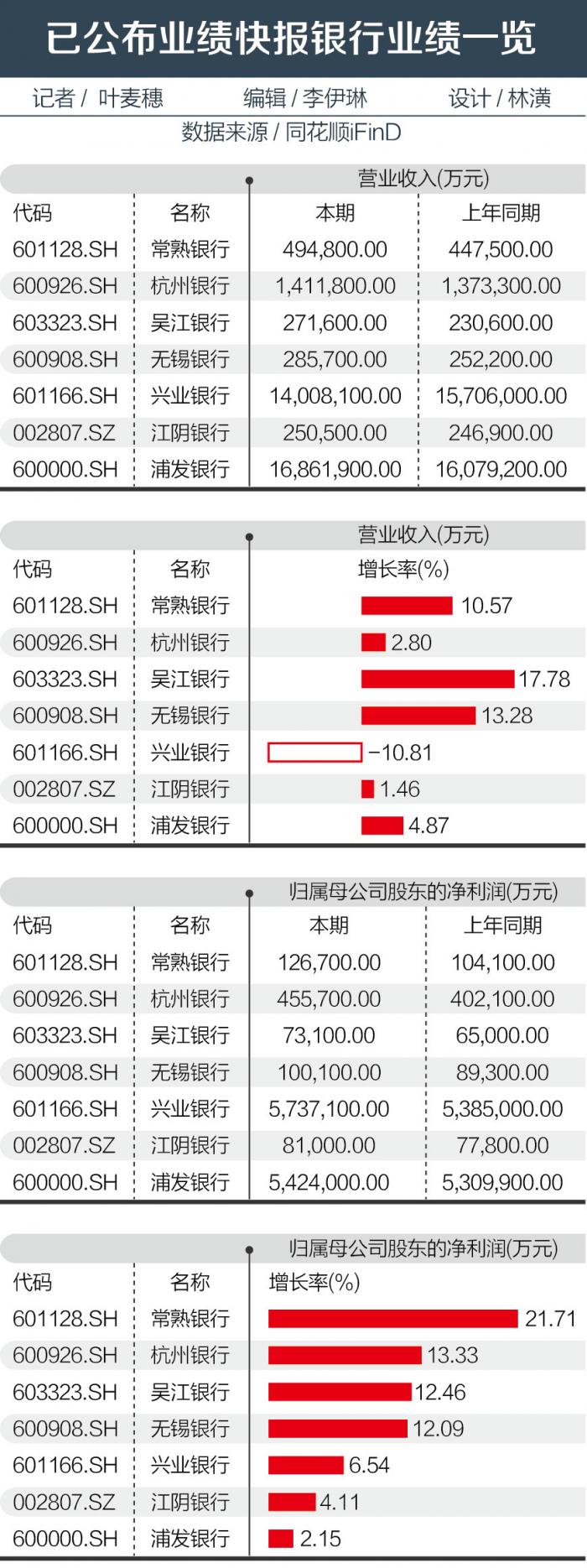 据同花顺统计,目前已经有7家银行公布了2017年的业绩快报,全部实现正增长,其中常熟银行、杭州银行、吴江银行和无锡银行归属母公司股东的净利润更是实现双位数的增长。
