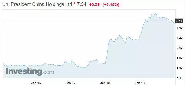 记者注意到,康师傅控股和统一企业中国的股价近两日均出现明显上涨。