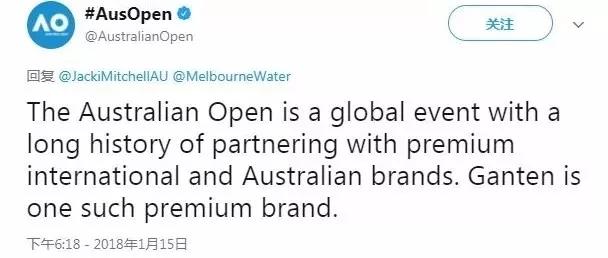“澳网公开赛是一个与国际优质品牌有着长期合作关系的全球性赛事。此次合作的中国矿泉水品牌就是这样的一个优质品牌。”