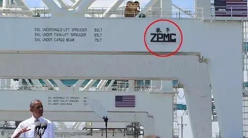但是演讲期间,一阵风将奥巴马身后一架龙门吊上的美国国旗吹掉,下面竟然露出了“振华”(一个中国企业)的商标。