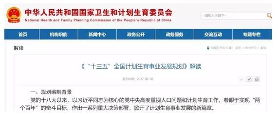 2017年2月,国家卫计委印发《“十三五”全国计划生育事业发展规划》,其中明确要求,到2020年总和生育率要从2015年的1.6回升到1.8的水平,年均自然增长率保持在6‰左右。