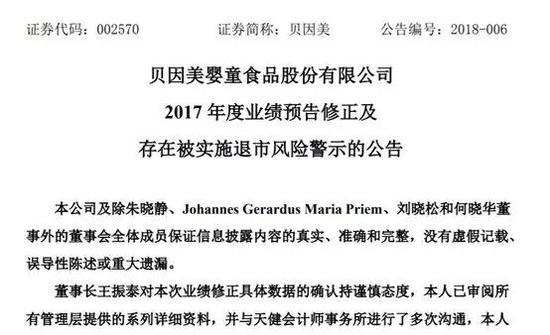 同时,当初曾被看好乘着“二孩红利”东风的承德露露和贝因美两家企业,最近公布的业绩均不理想。其中贝因美预告2017年亏损达到8-10亿元,并有退市风险。
