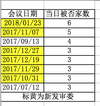 上一次的记录还是2017年11月7日,当天否决5家;9月13日否决了4家。