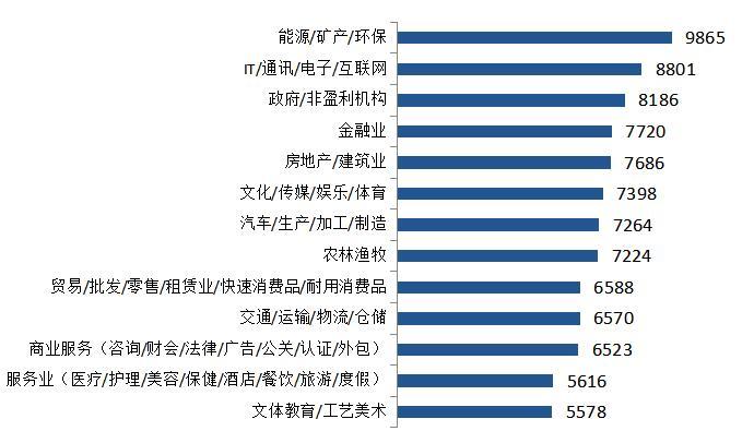 分行业看,能源/矿产/环保行业白领的年终奖均值最高,为9865元,其次是IT/通讯/电子/互联网的8801元。
